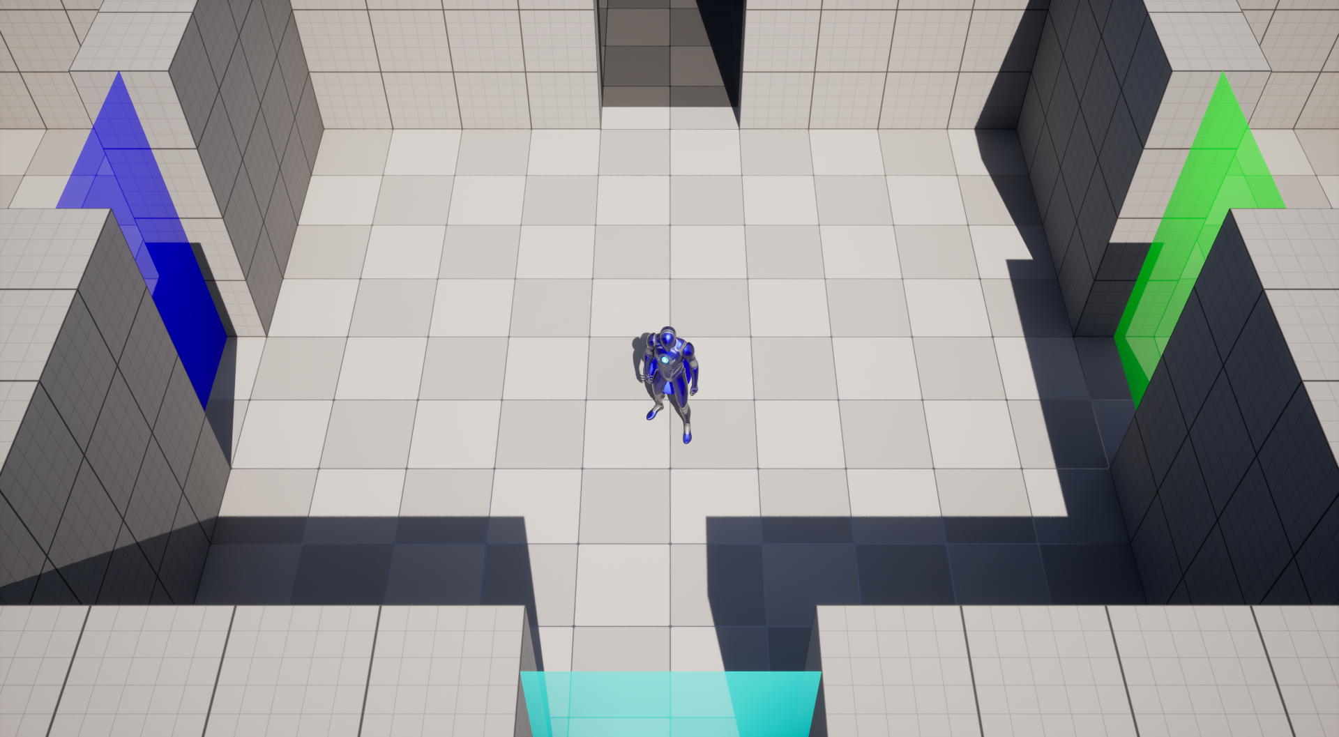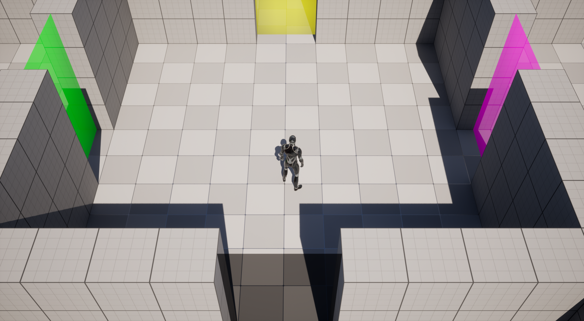 Each door is locked by a specific color. Step through Color Dispensers to change your color and unlock new paths.